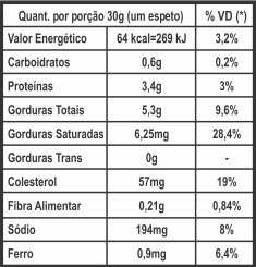 % Valores Diários com base em uma dieta de 2.000 kcal ou 8.400 kJ. Seus valores diários podem ser maiores ou menores dependendo de suas necessidades energéticas.