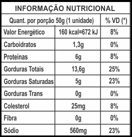% Valores Diários com base em uma dieta de 2.000 kcal ou 8.400 kJ. Seus valores diários podem ser maiores ou menores dependendo de suas necessidades energéticas.