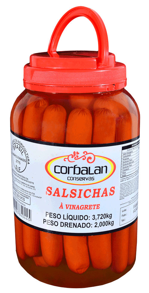 Salsichas à vinagrete, em conserva, disponível nas seguintes unidades: